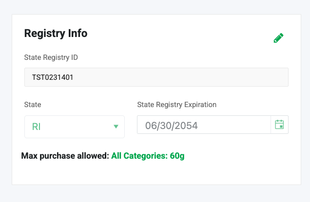 Flourish Software displays the purchase limits on the customer profile within withtin the Registry Info part.