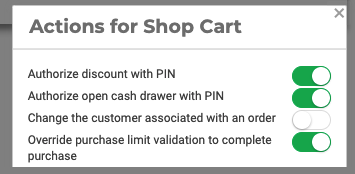 To authorize the override with a PIN, the user must have a role assigned with the Override purchase limit validation to complete purchase action permission turned on. Upon entering your PIN, if the override is successfully authorized, you can proceed to checkout.