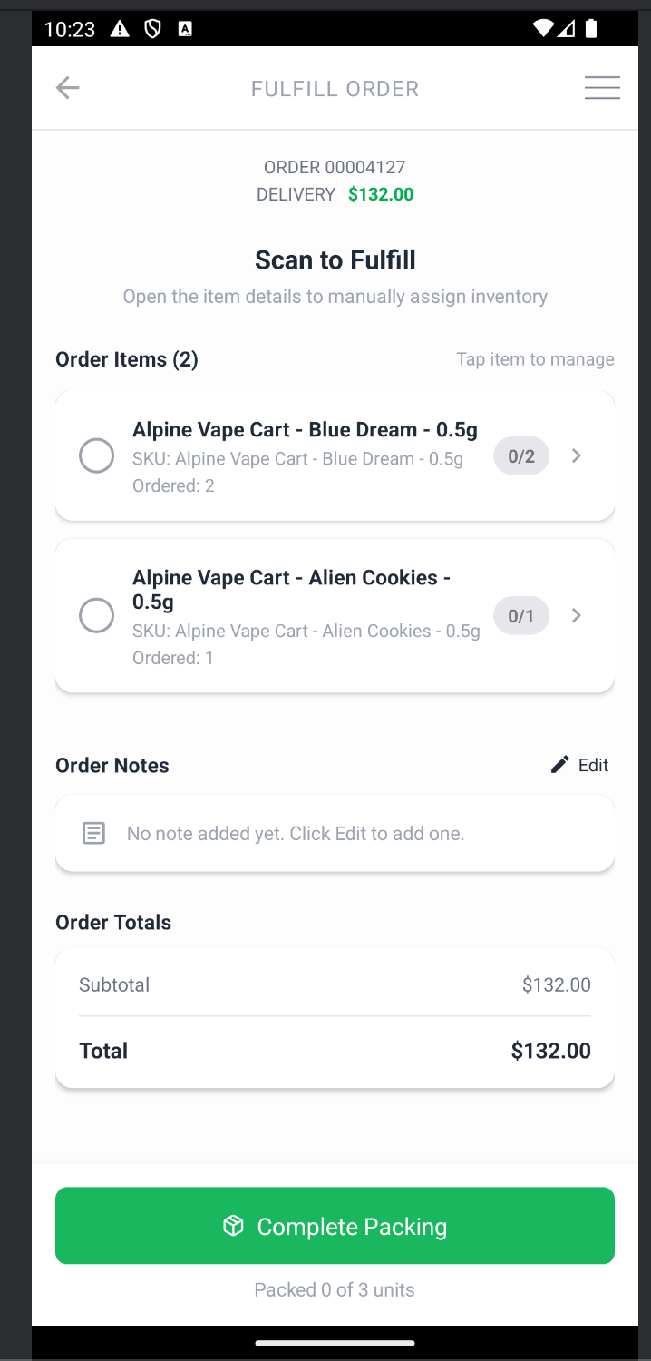 Use Flourish's mobile app to quickly pack retail orders. This is designed to use scanning and works best on a Zebra TC22/26 Mobile Computer. Currently, the mobile app only supports fulfilling orders, not modifying or creating new orders. Only pre-packed inventory allocation is supported (no "deli-style" weight-based items).