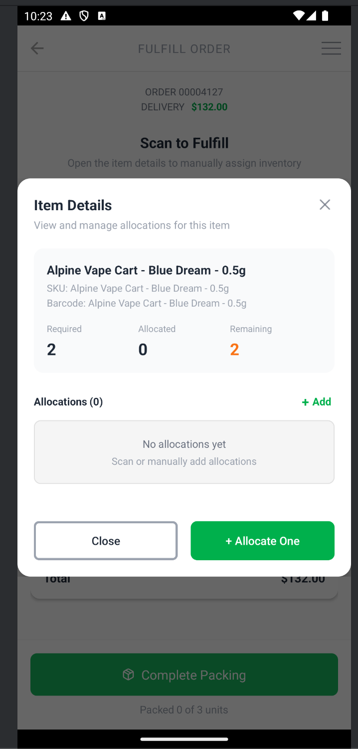 Manually allocate if the inventory will not scan.
