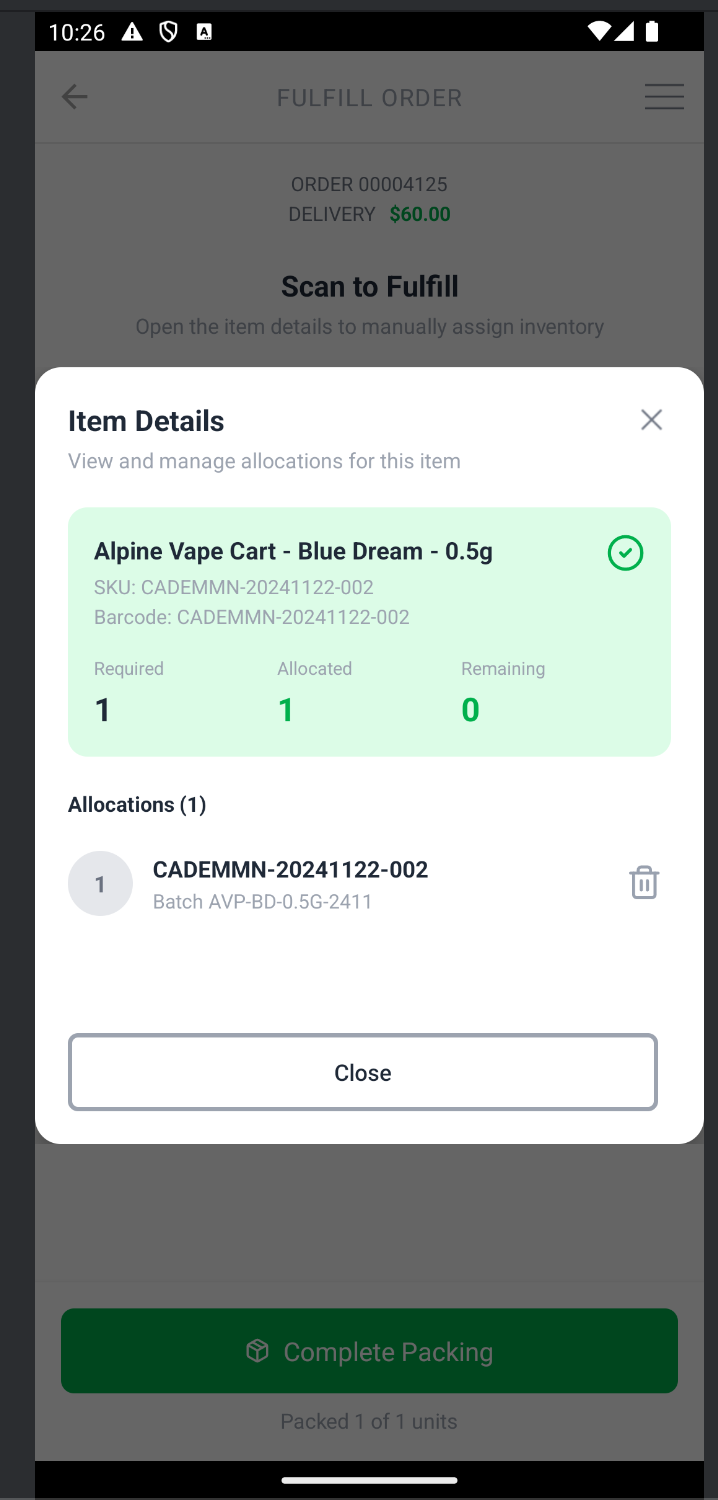 Scan the inventory to allocate it to the order.
