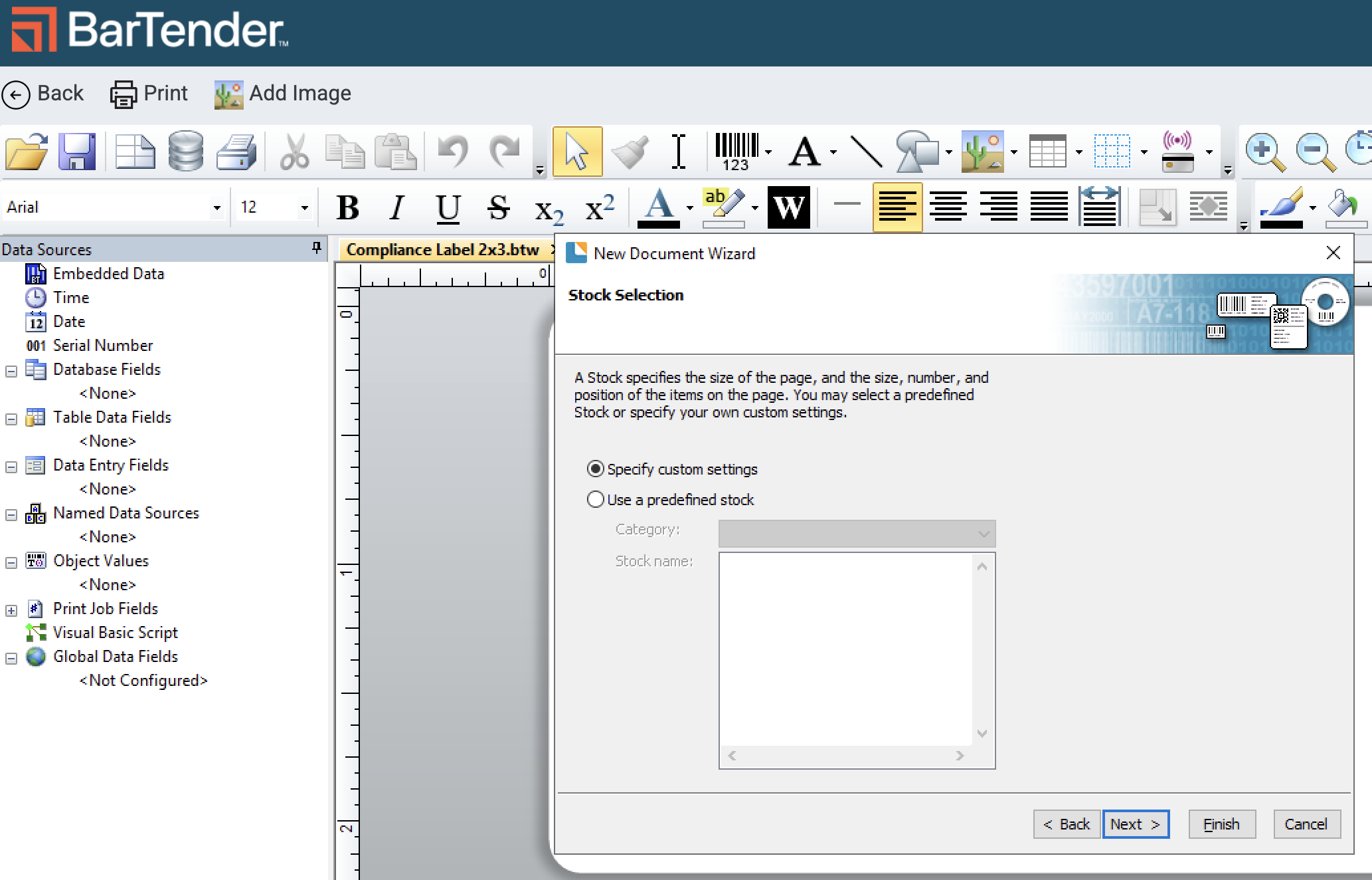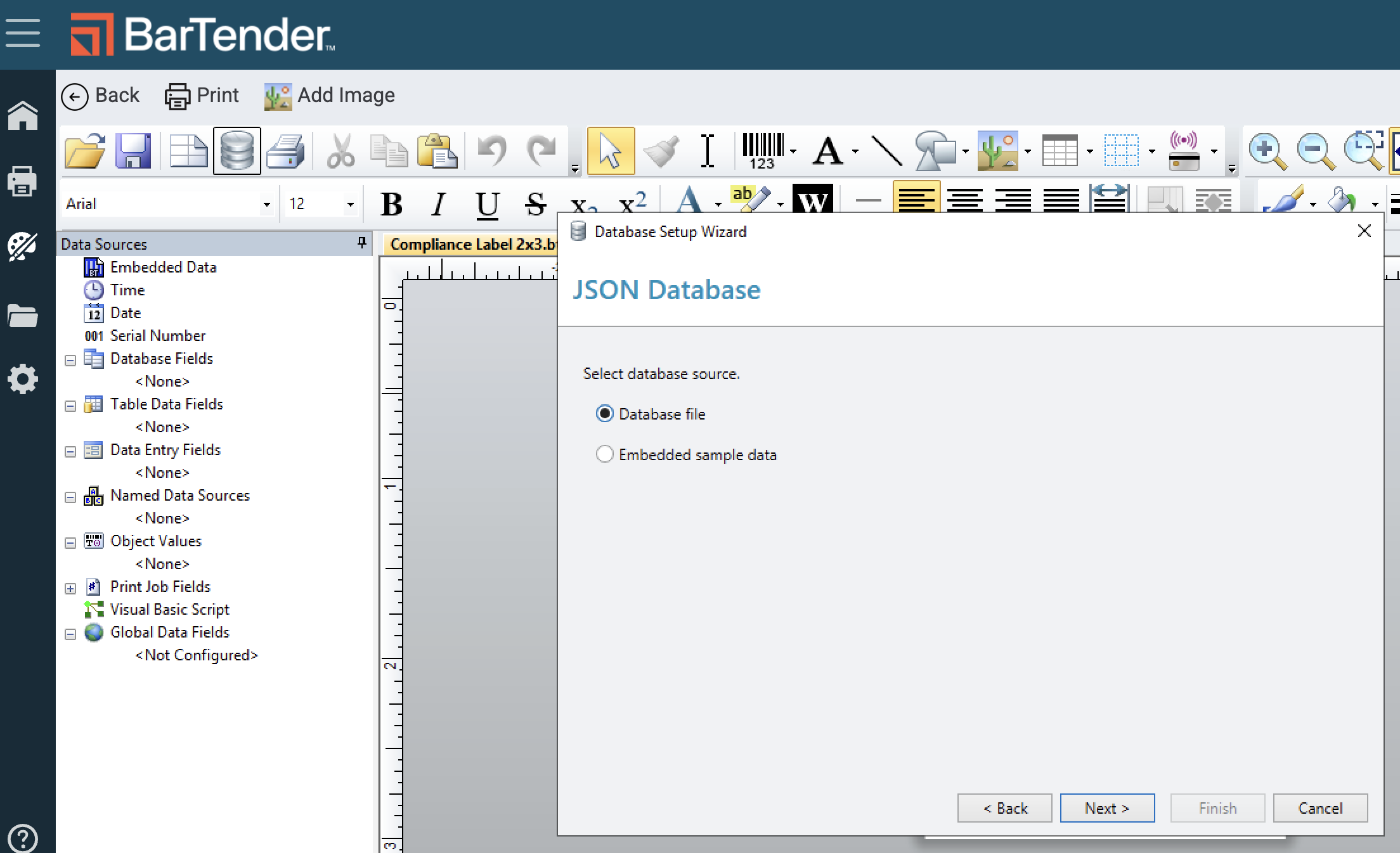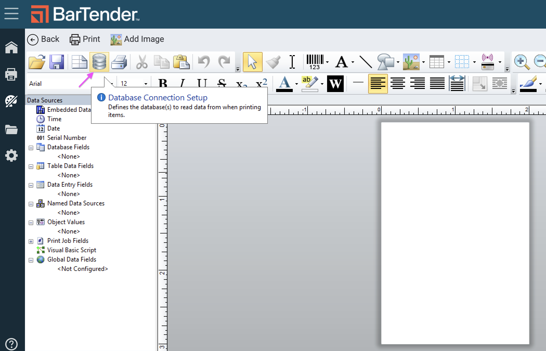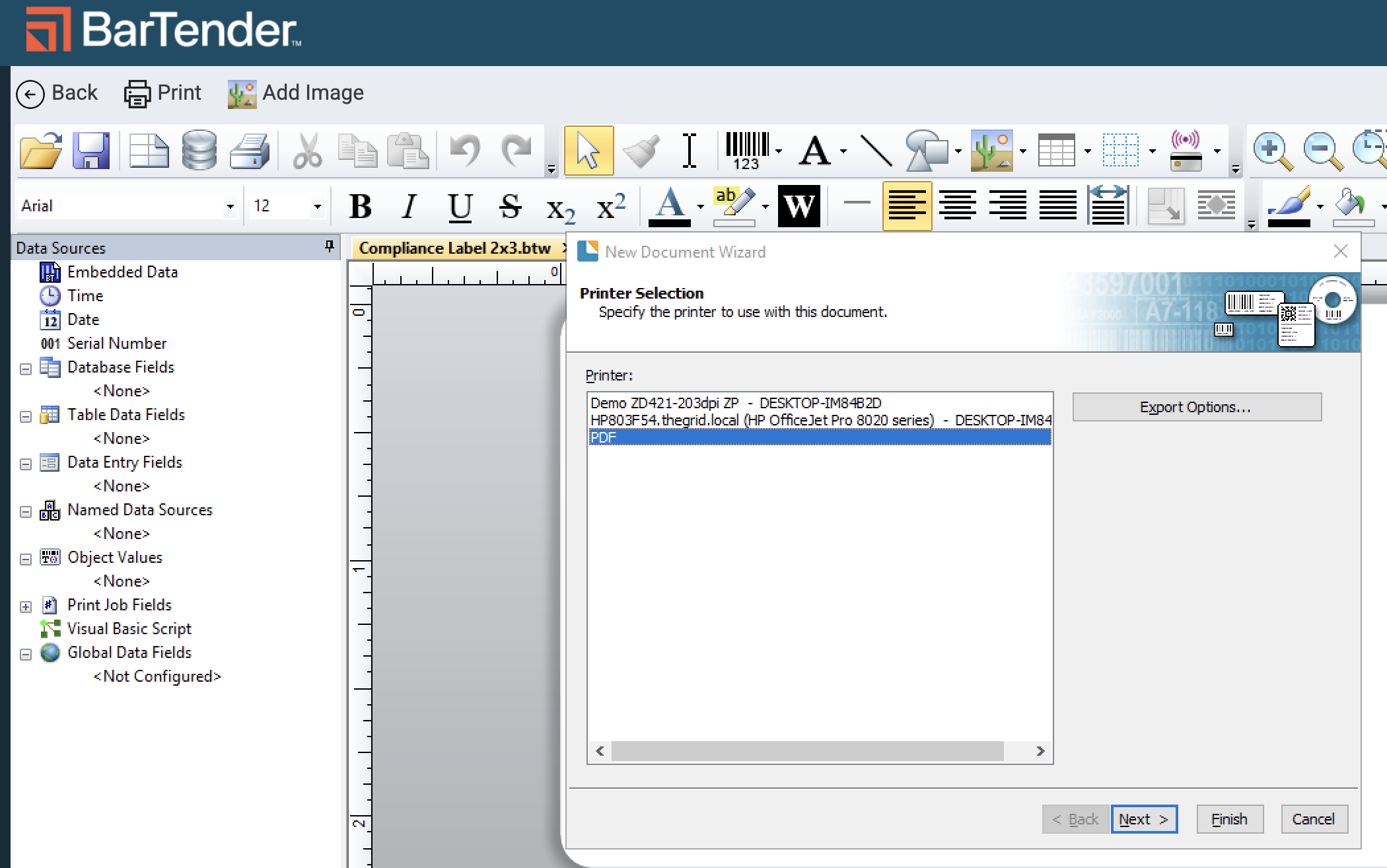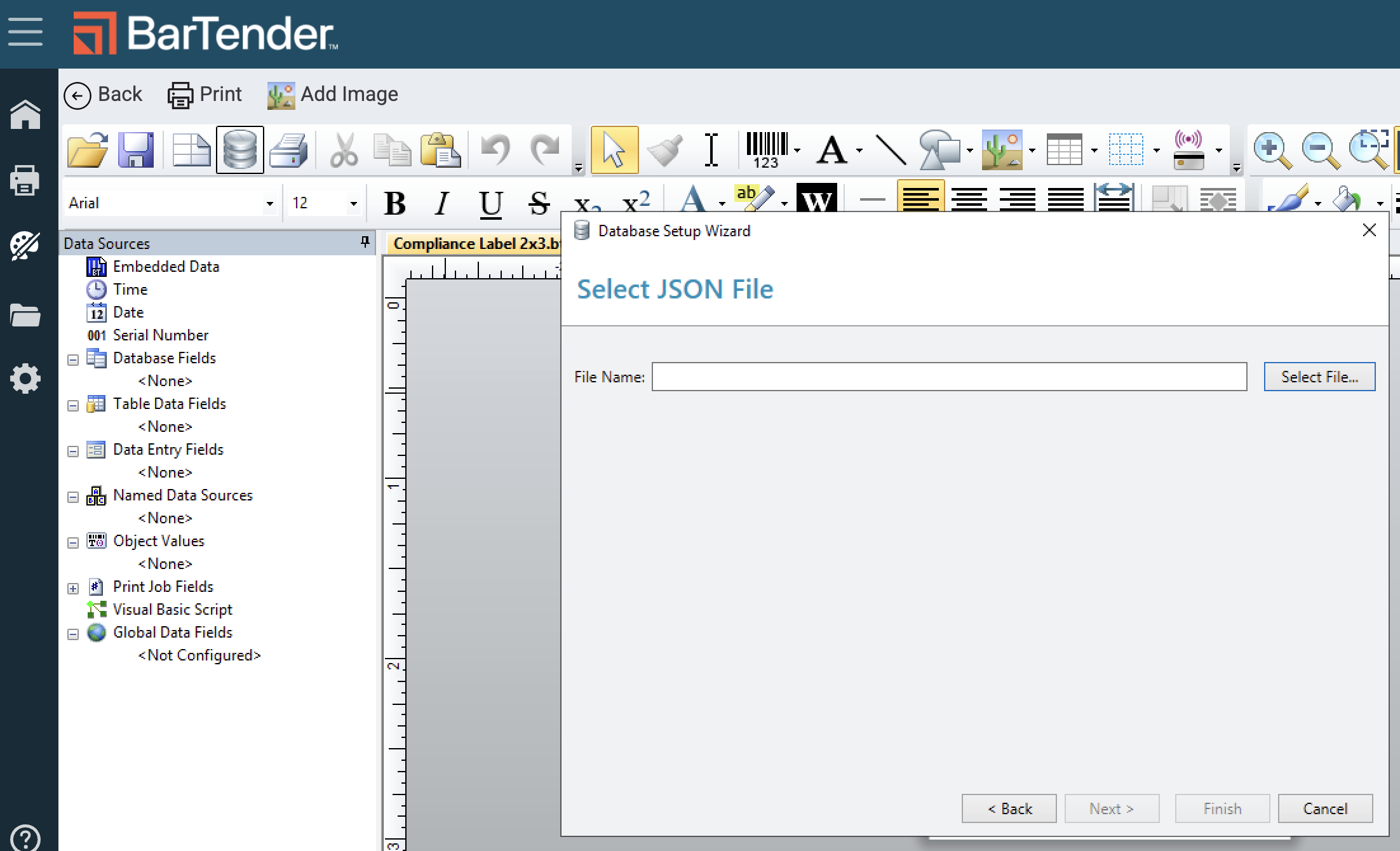 Connect the Flourish database fields to the Template file in BarTender so you can configure your label with integrated Flourish data.