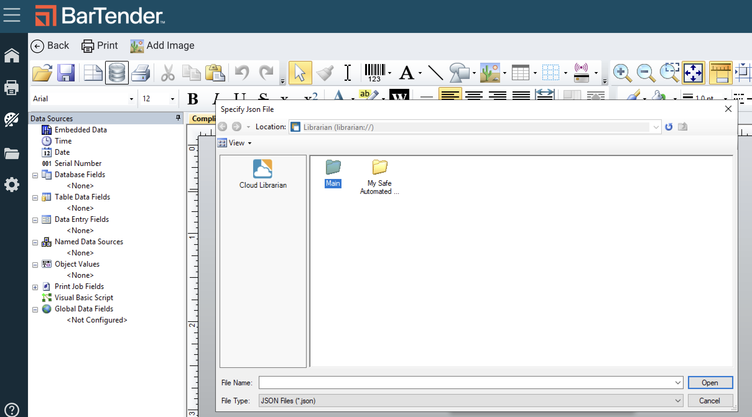 - Navigate to your BarTender Librarian to confirm the Reference Data has been populated. We will use this later for Database Connection Setup and configuring your label templates.