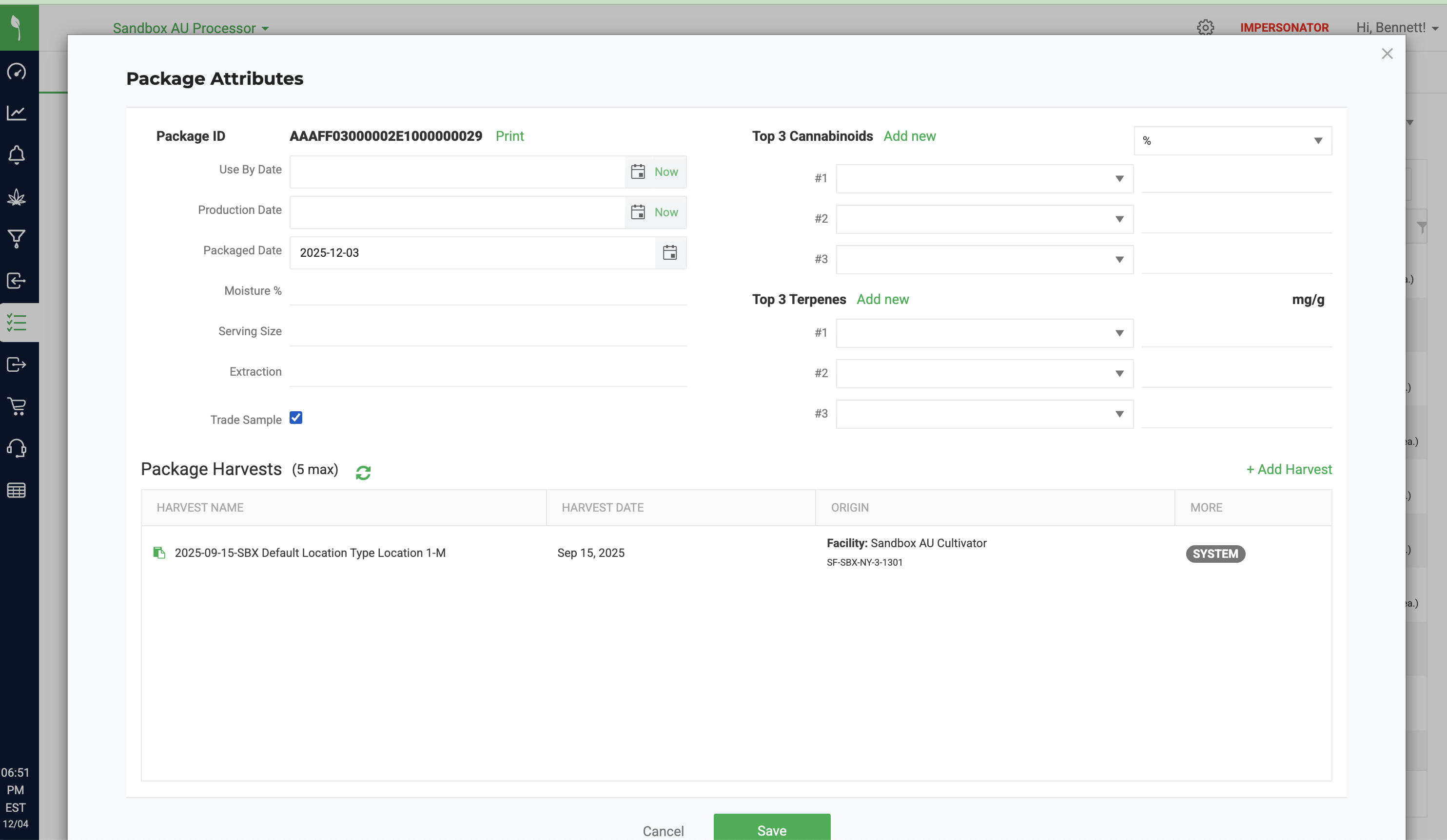 METRC Harvesting - wet and dry weights, waste, harvest packages and completion.