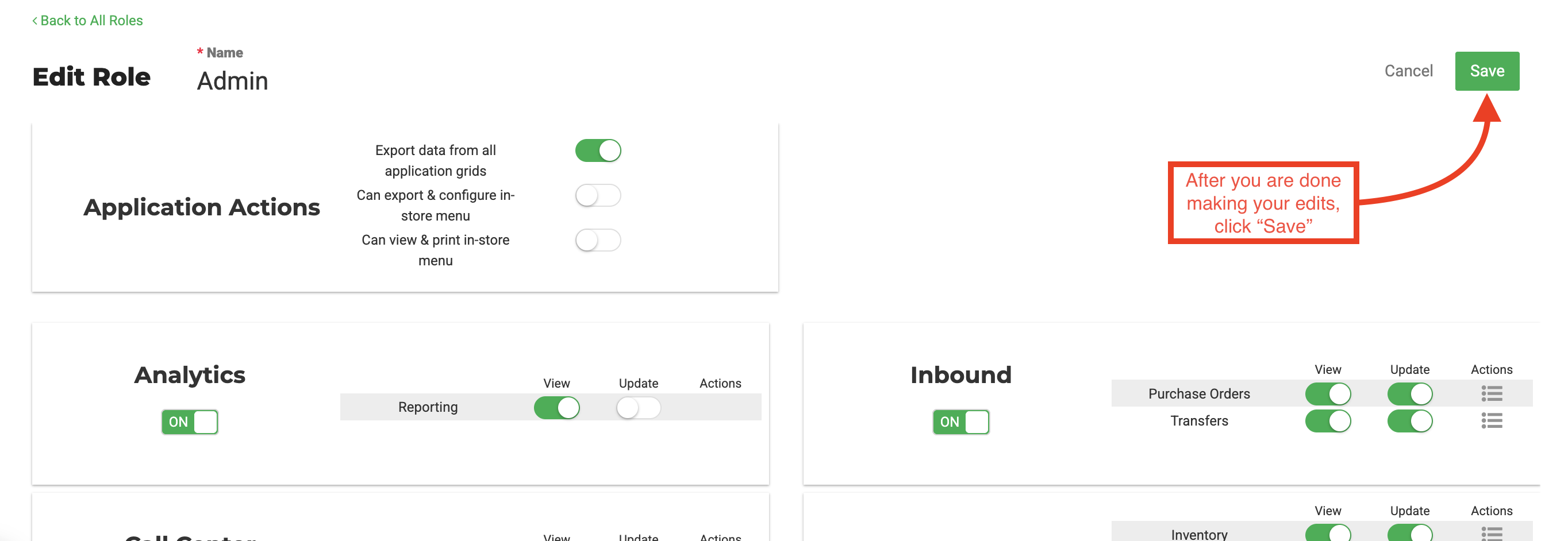 - Once you're done editing the role, click "Save" in the upper right corner of the page