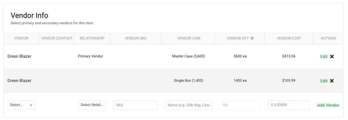 - Use the "Primary Vendor" relationship to set the default conversion. This is optional.