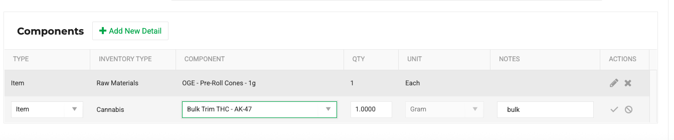 - Note the success message.These fields are cloned from the original item: Type, Class, Category, UOM, Measurement Type (if “UOM” is “Each”), Unit Weight (if “UOM” is “Each”), Serving Size in Grams, Ref Fields 1, 2, and 3, Cost, Price, Reorder Point, Unit CBD/THC Percent, CBD per Unit, THC per Unit, Source Type, Brand, Product Line, Description, Product Image, and all defined item “Rules.”