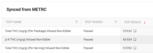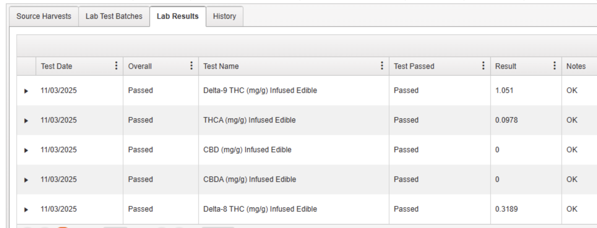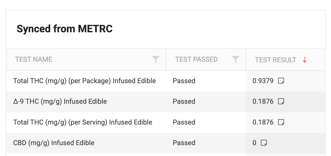 - Map the Total THC mg/g (per Serving) Infused Edible from Metrc to the Total THC% field in Flourish. Double check this field!